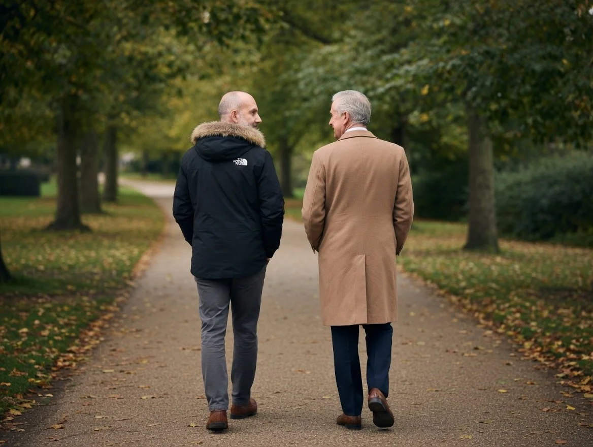 Gentle conversations while walking through London parks or quiet neighbourhoods.